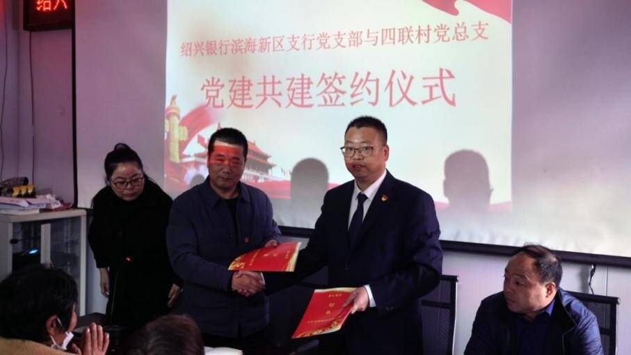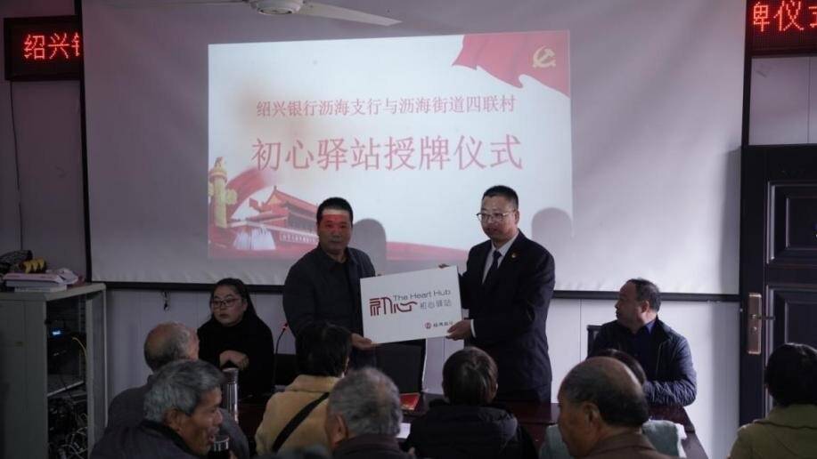 近日,绍兴银行滨海新区支行党支部与沥海街道四联村党总支签订了党建共建协议,绍兴银行滨海新区支行下辖沥海支行与沥海街道四联村在该村大会堂举行“初心驿站”挂牌授牌仪式。