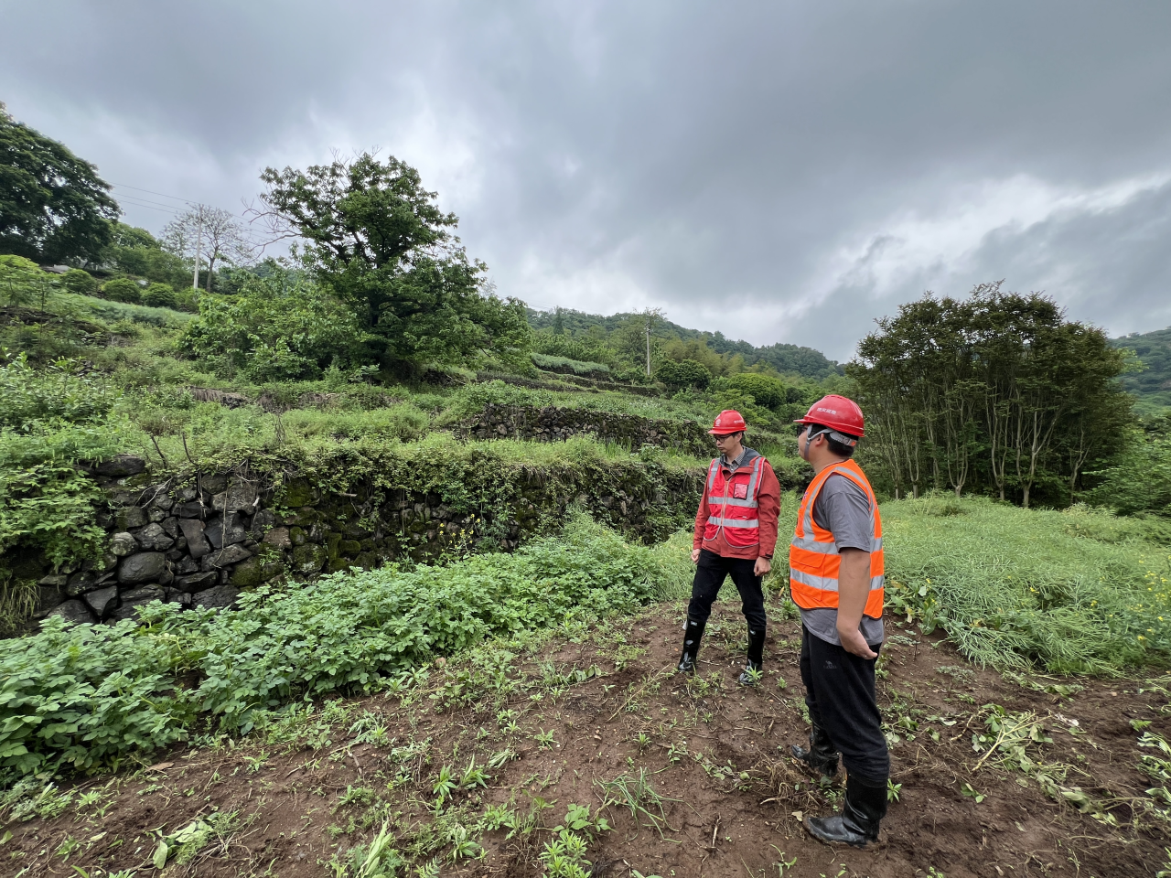 澄潭街道山泊村俞善千等5户屋后出现滑坡险情,浙江有色地勘集团有限公司地质环境事业部技术人员火速赶往现场踏勘,初步查勘了解滑坡基本情况后,划定并设置危险警戒区,协助管理部门撤离区内人员,并根据实际情况提出尽早开展应急勘查及治理设计的建议。