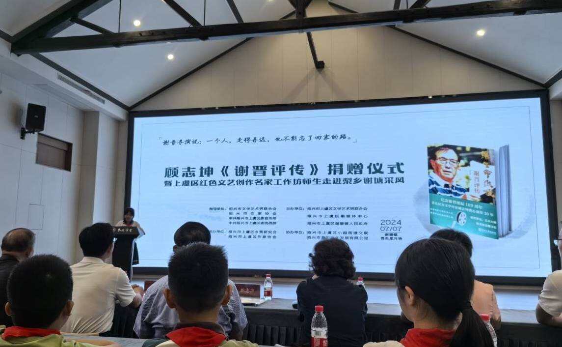 继2000多册《谢晋评传》寄赠海内外上虞乡贤之后,著名作家顾志坤携新书再赠谢晋故里致敬一代名导。7月7日,顾志坤《谢晋评传》捐赠仪式暨上虞区红色文艺创作名家工作坊师生走进梨乡谢塘采风活动在谢晋故里举行,《江南》杂志原主编、省作协原副主席袁敏等出席捐赠仪式。