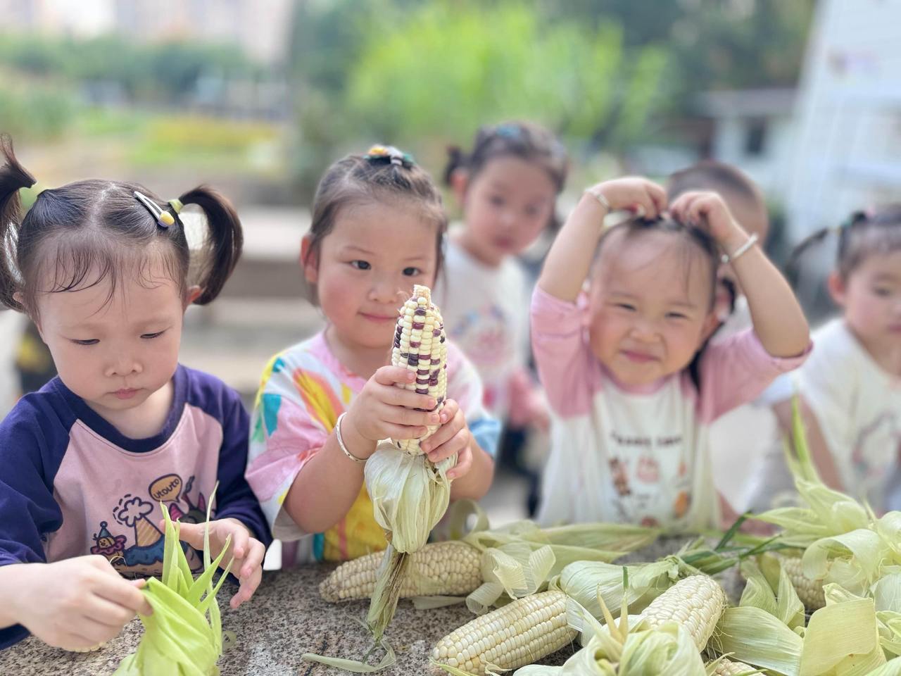 苏联的教育家苏霍姆林斯基说过:“大自然是第一本教科书,是世界上最有趣的老师,她的教益无穷无尽。”从幼儿亲近大自然的需要出发,鹤琴幼儿园充分挖掘自然资源,引导幼儿细致的观察玉米,满怀喜悦的收获玉米,让大自然的馈赠不断充实孩子的童年,不仅让孩子们丰富了知识,体验了生活,享受到快乐,也使我们深深地感受到那份久违的童趣和天真。