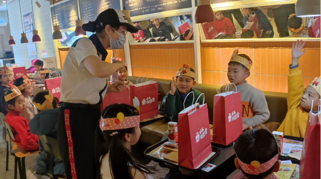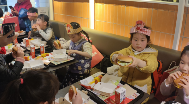 接着,同学参观了肯德基的制作场地和各种食品,大家纷纷表示要远离垃圾食品,成为健康饮食的小卫士。于是,同学们用自己精心准备的营养食材,做了一个个健康汉堡,吃得开心,吃得放心。