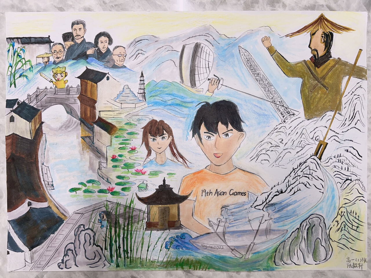 同学们还通过创作短视频、绘画、摄影、书法等艺术形式,向大家讲述古城绍兴的亚运故事,推介绍兴的风景名胜,描绘绍兴的经济发展。为了让更多人了解绍兴,有的同学还用英文演绎的方式,展现古城的城市形象,立体真实地向世界讲好绍兴故事。将竞技体育精神、绍兴城市品质、亚运文化内涵等元素融入创作。