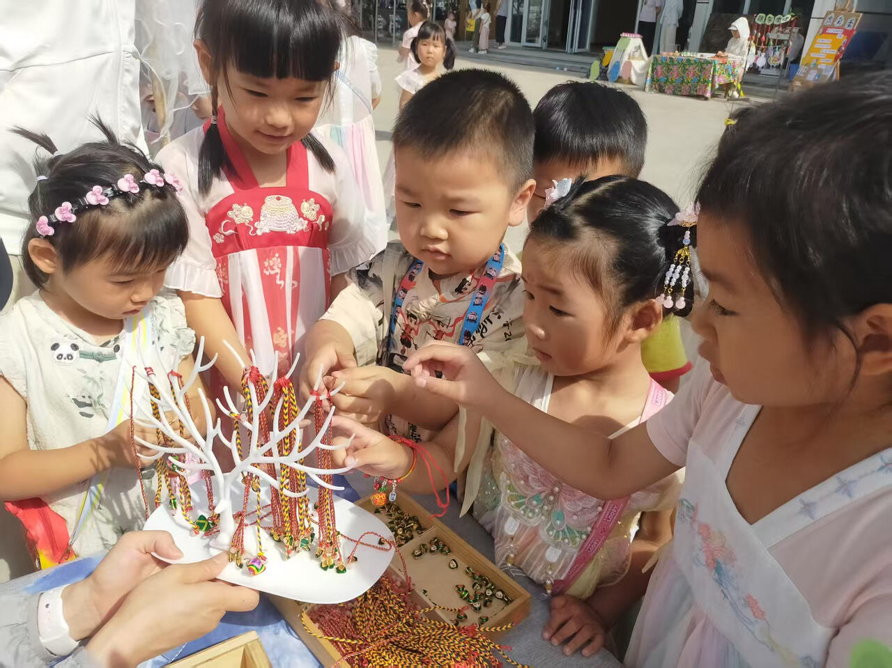 孩子们玩泥塑、体验扎染、绘制彩蛋、还有投壶、射五毒等趣味游戏闯关活动。
