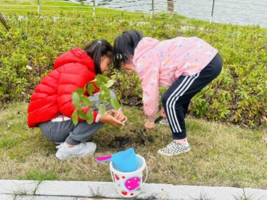 春和景明万物长,植树造林添绿忙。在这草长莺飞、春意盎然的美好时节,一年一度的植树节又来到。今天是3月12日,是我国第45个植树节,为了增强队员们的环保意识,养成植树造林、爱护环境的良好习惯,绍兴市树人小学教育集团朝阳校区三(2)班“四颗糖”小队的队员们开展了“植”此青绿,收获美好为主题的植树节实践活动。