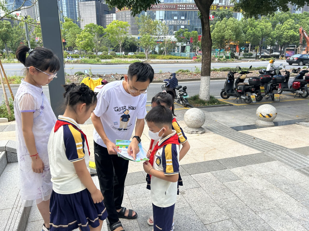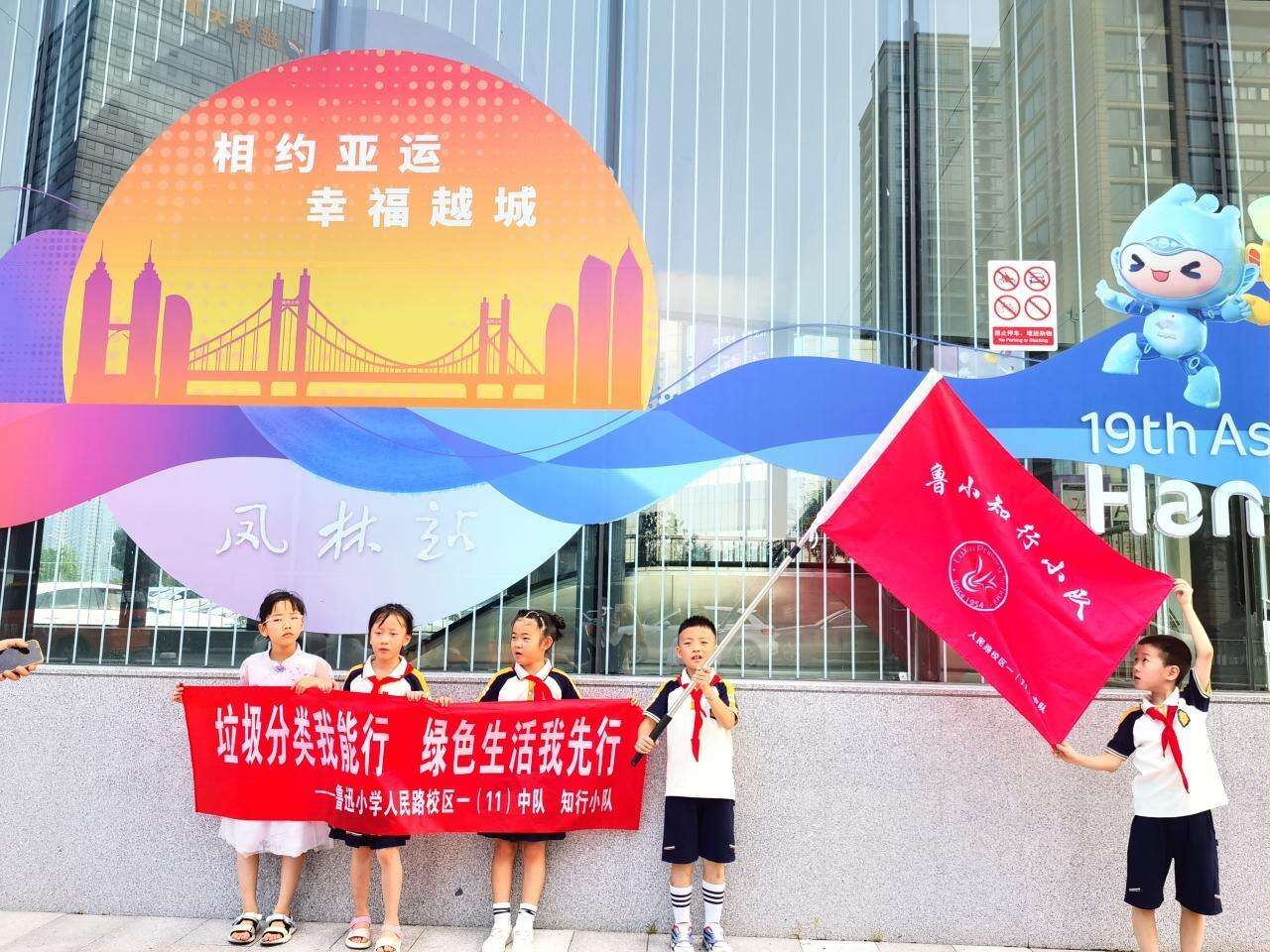 垃圾分类我能行,绿色生活我先行。在迎接亚运会来临之际,为倡导“绿色亚运”理念,绍兴市鲁迅小学人民路校区一(11)中队知行小队的同学们冒着酷暑,来到绍兴镜湖凤林地铁站,向过往市民们认真宣传环境保护的重要性,呼吁大家讲文明,讲环保,倡导垃圾分类,呼吁捡塑减塑。