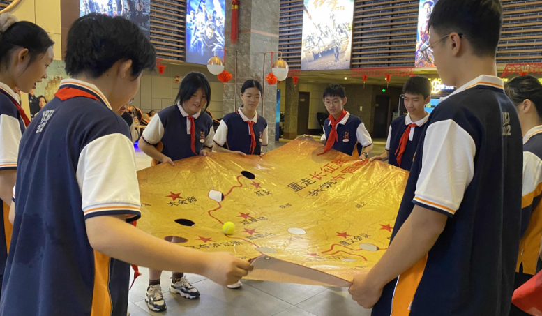 随后,同学们走进了影厅观看影片,并参与主题游戏“重走长征路”,在光影明寐中、在小球滚动间,那段充满硝烟的峥嵘岁月再次浮现在大家眼前。