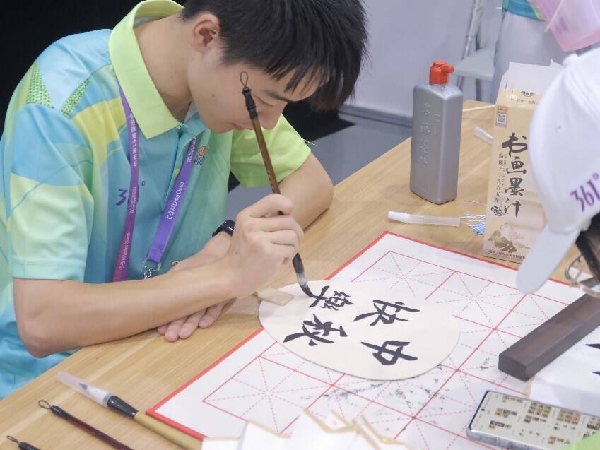 卓越“小青荷”亲手绘纸扇、题书法,将满满的中秋祝福送给来自异国的运动员。纸扇蕴含着汩汩涌动的中华传统文化经典,流入你我心中,流向世界各处。