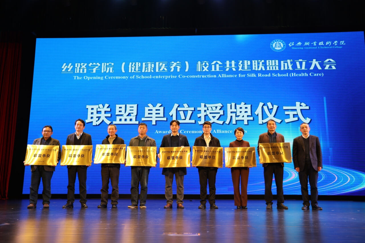 1月9日下午,丝路学院(健康医养)校企共建联盟成立大会在绍兴职业技术学院洵美礼堂举行。