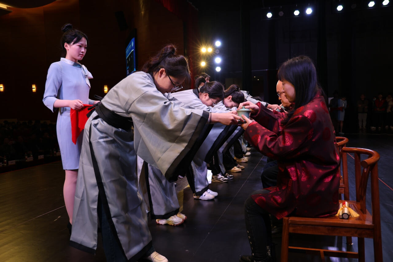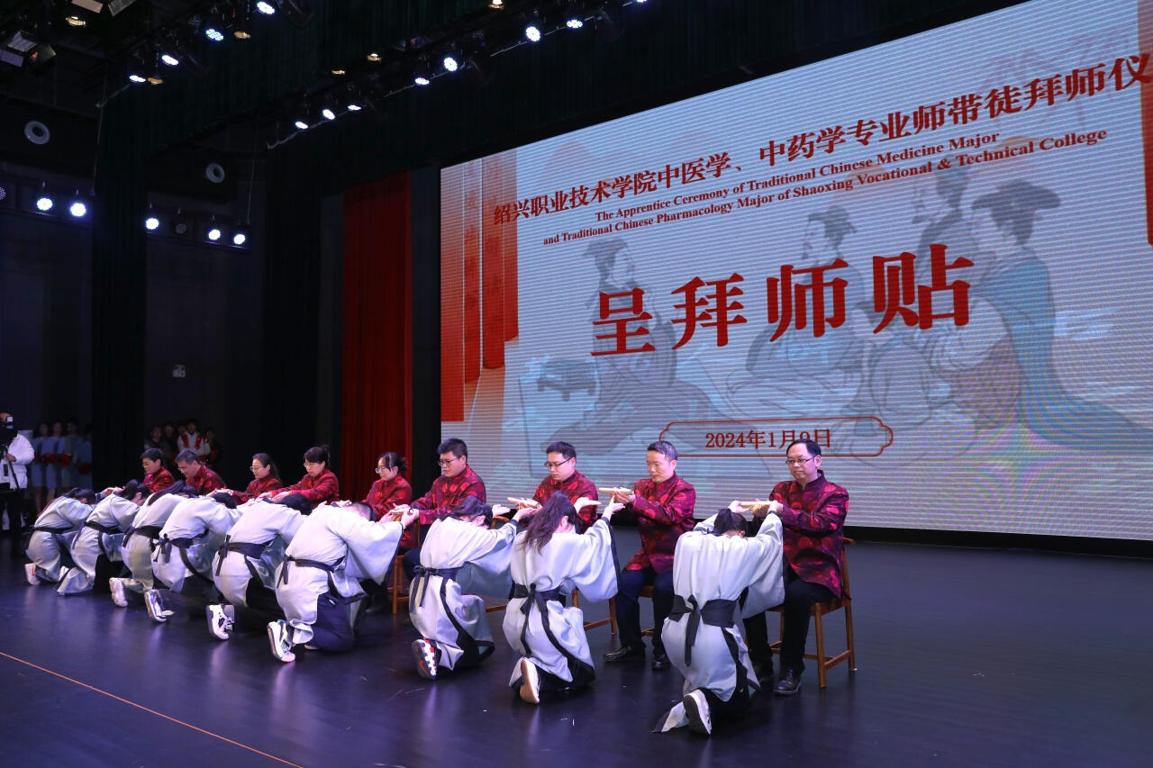 会上还组织了绍兴职业技术学院中医学、中药学专业师带徒拜师仪式。通过呈拜师帖、行拜师礼、呈敬礼茶、赠回徒贴等传统礼仪,展现尊师重道、明礼求学的精神。
