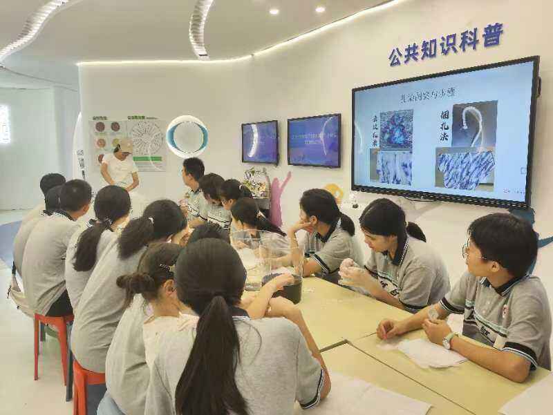 院内健康科普教育基地作为本次实践活动的主场地,医生在宣教长廊内为同学们们详细介绍了眼的奥秘和青少年眼睛保护的建议等知识。大家还通过演示仪看到了色盲和近视眼眼中的世界。最后在老师的指导下,同学们每人都完成了一块扎染布作品,用亲身实践的方式体会到了眼睛可以观察色彩和图案的美丽。