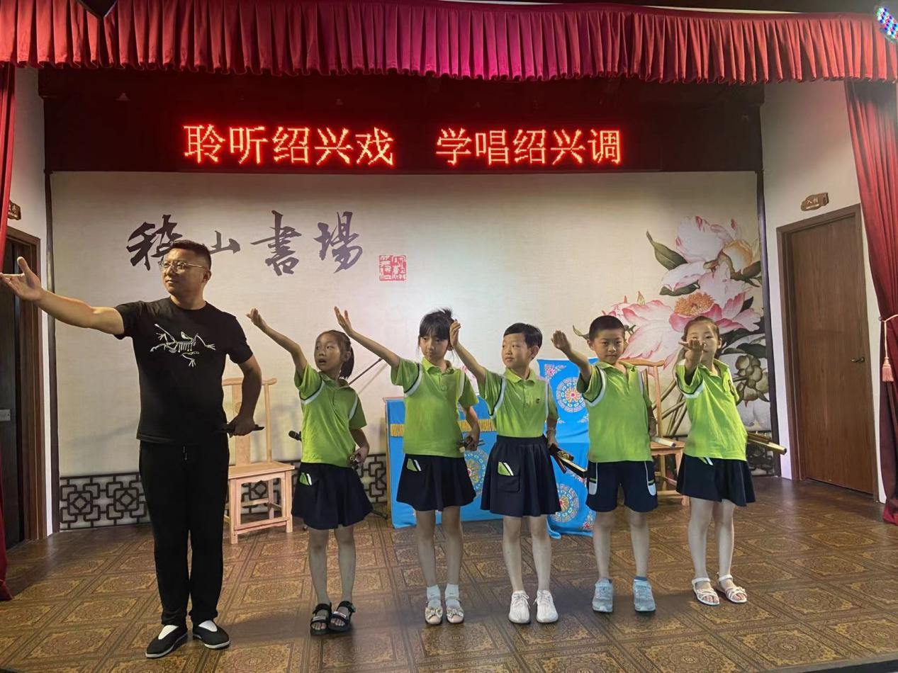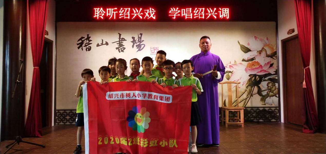 近日,树人小学教育集团朝阳校区二(2)班彩虹小队来到了位于绍兴市越城区稽山公园内的稽山书场,开展了一场传承学习绍兴戏的主题活动。
