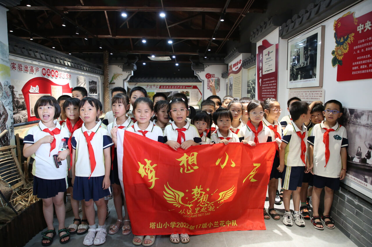 赓续红色血脉,传承红色基因。7月14日上午,绍兴市塔山小学一(17)班梦想小队的少先队员们来到绍兴东湖农场参观。