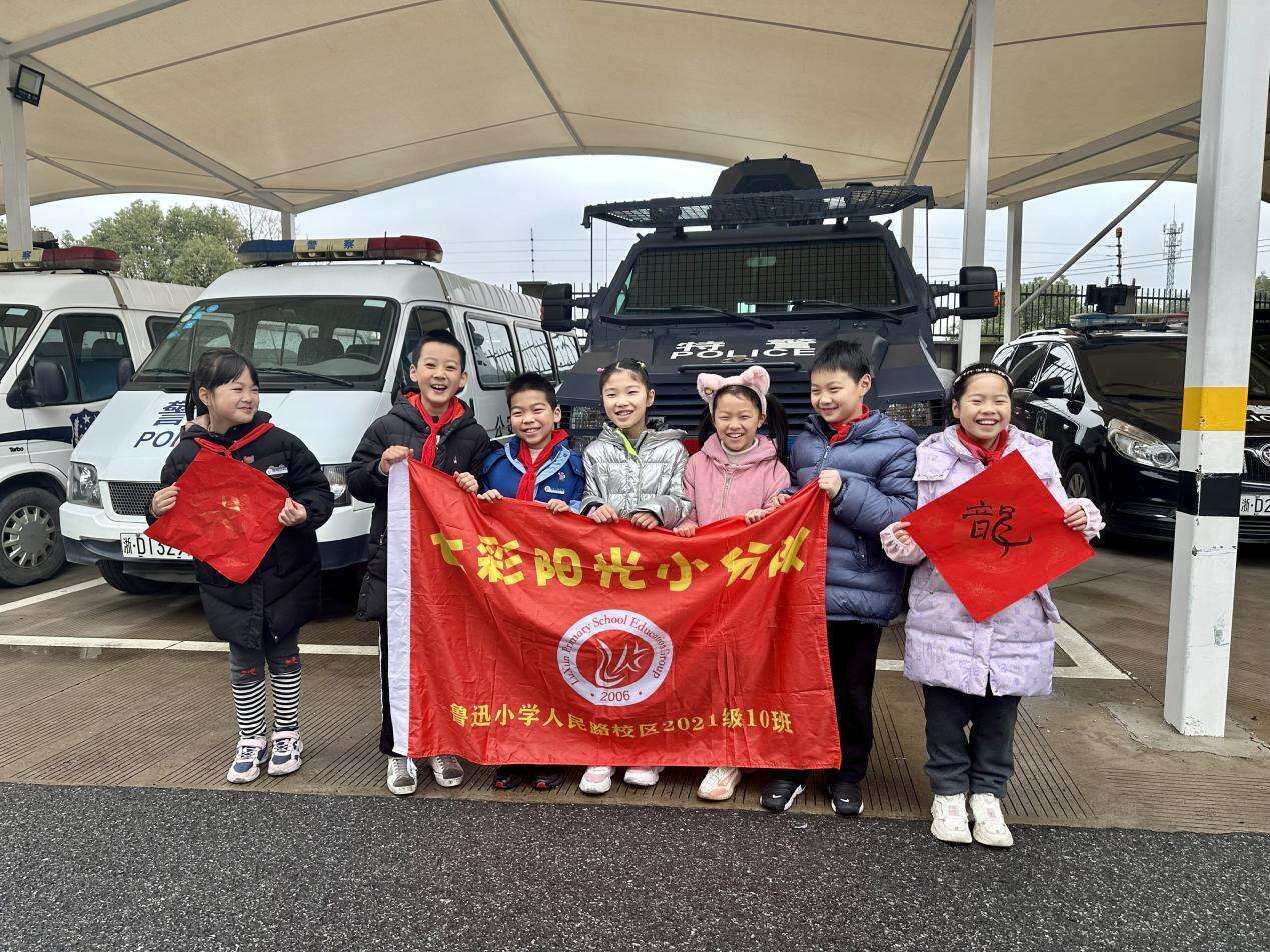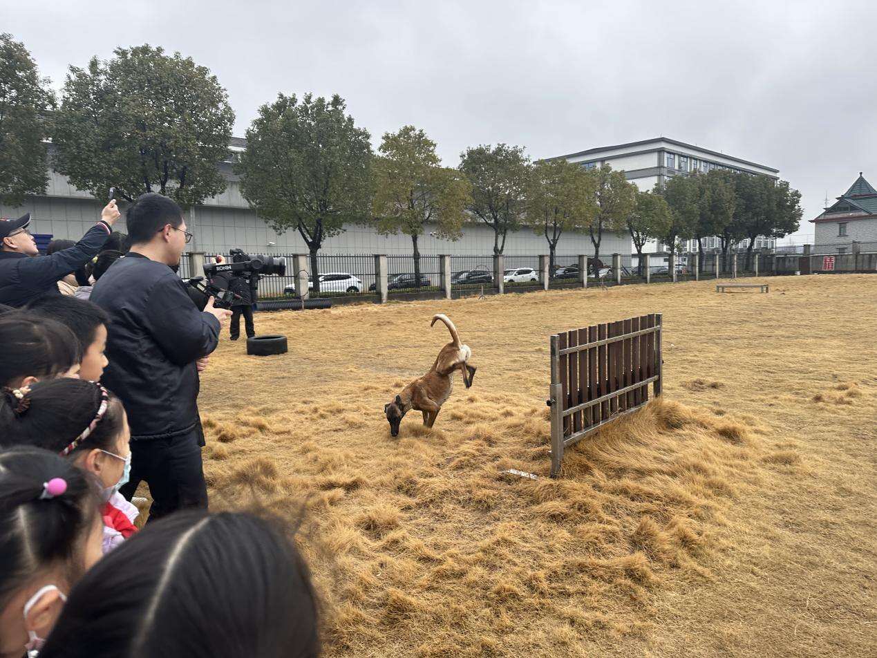 为了丰富孩子们的寒假生活,感受科技文化的魅力,近日,绍兴鲁迅小学人民路校区三(10)班“七彩阳光小分队”来到柯桥巡特警大队参加实践活动。虽然寒风刺骨,但阻挡不了孩子们看警犬表演的热情。“它们可以飞速地跃过各种障碍物,还可以将汽车中的‘犯人’精准抓住。警犬真是警察叔叔的好帮手!”孩子们聚精会神地观看警犬表演,不时高声欢呼。