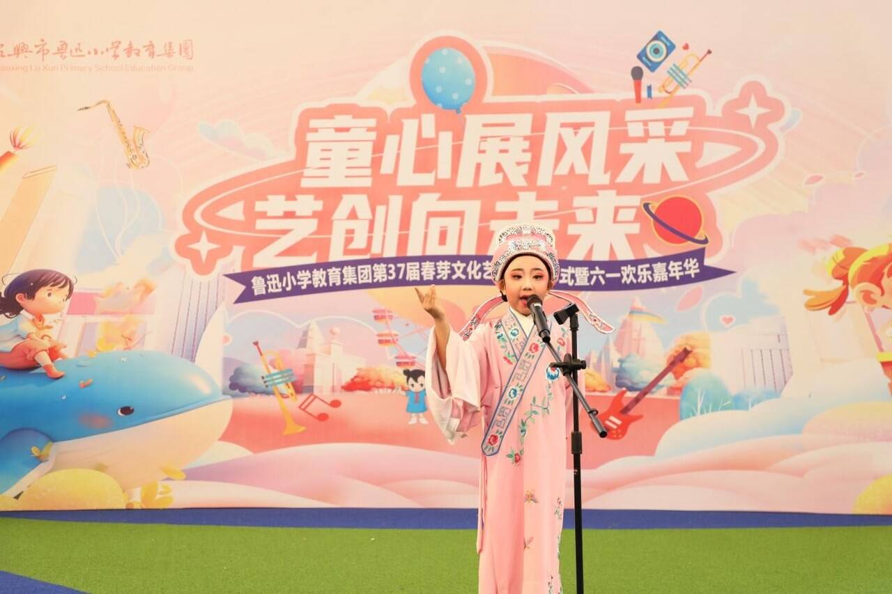 在刚刚落幕的绍兴市鲁迅小学第37届“春芽文化艺术节”上,文源校区一(3)班的钱朵朵小朋友以作为校“十佳方言传承人”中年龄最小的获奖者之一,凭借一曲悠扬的越剧表演惊艳全场,用稚嫩童声唱响非遗文化的传承力量。