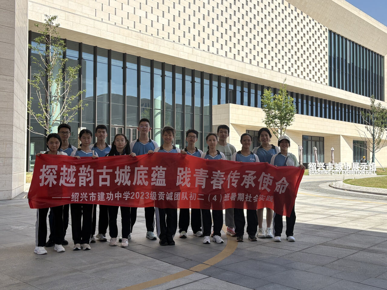 绍兴,一座拥有2500多年建城史的历史文化名城,处处散发着独特的文化魅力。为深入学习贯彻习近平文化思想和习近平总书记考察浙江重要讲话精神,传承弘扬中华优秀传统文化,挖掘绍兴文化底蕴,近日,绍兴市建功中学23级贡诚团队4班社会实践小队的初中生怀揣对绍兴古城历史的好奇与对未来的憧憬,走进绍兴市城市展览馆,开展了一场以“探越韵古城底蕴,践青春传承使命”为主题的暑期社会实践活动,在沉浸式体验中触摸城市脉络,在历史与未来的对话中厚植文化自信。