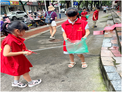 同学们拿着垃圾袋和夹子,来到美东社区内,分小组行动起来。同学们个个不怕累、不怕脏,自己动手,清理各类垃圾维护并美化社区环境,哪怕是一个烟盒、一片纸屑都逃不过同学们的火眼金睛。