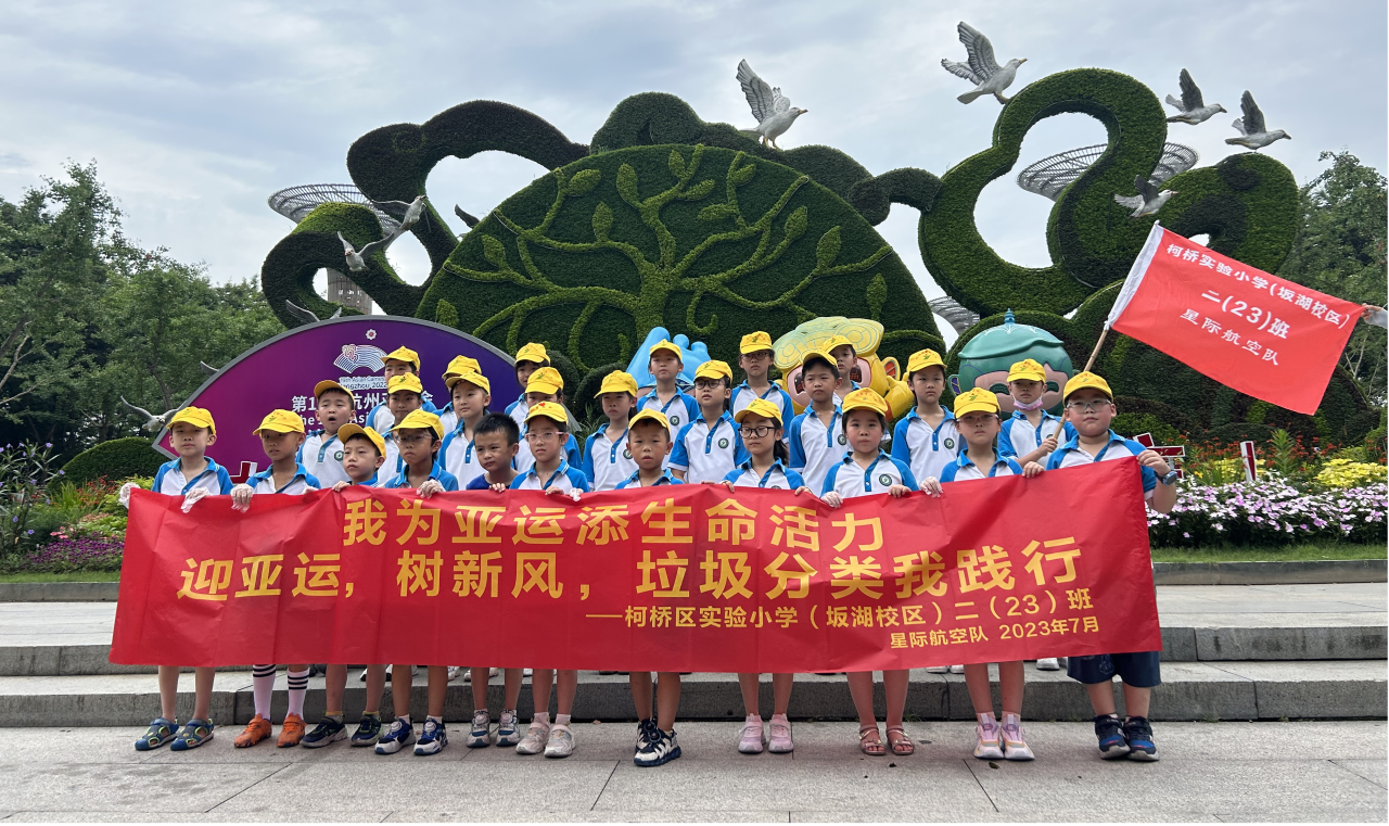 我为亚运添生命活力,迎亚运,树新风,垃圾分类我践行。近日,柯桥区实验小学(坂湖校区)二(23)班,星际航空队的27位同学,来到了瓜渚湖北岸公园进行了捡垃圾的小队活。
