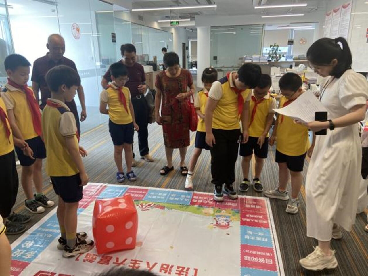 然后,同学们还分组体验了“法治人生”大富翁互动游戏。游戏将人们生活中“高铁霸座”、“碰瓷”、见义勇为、宠物狗伤人、小区高空坠落物伤人等行为的相关法律条文嵌入到每个格子中,参与小组通过扔骰子获取前进点数,并回答相应格子的法律问题,回答错误将失去前进的机会。通过这种体验式学法知法守法活动,让同学们真正感悟到:法律是成文的道德,道德是内心的法律,只有自己在日常生活中学法知法守法、加强品德修养、坚持克服困难挫折、才能成为一个具有乐观向上、诚实守信、友爱宽容、自尊自律优秀品质的少先队员。