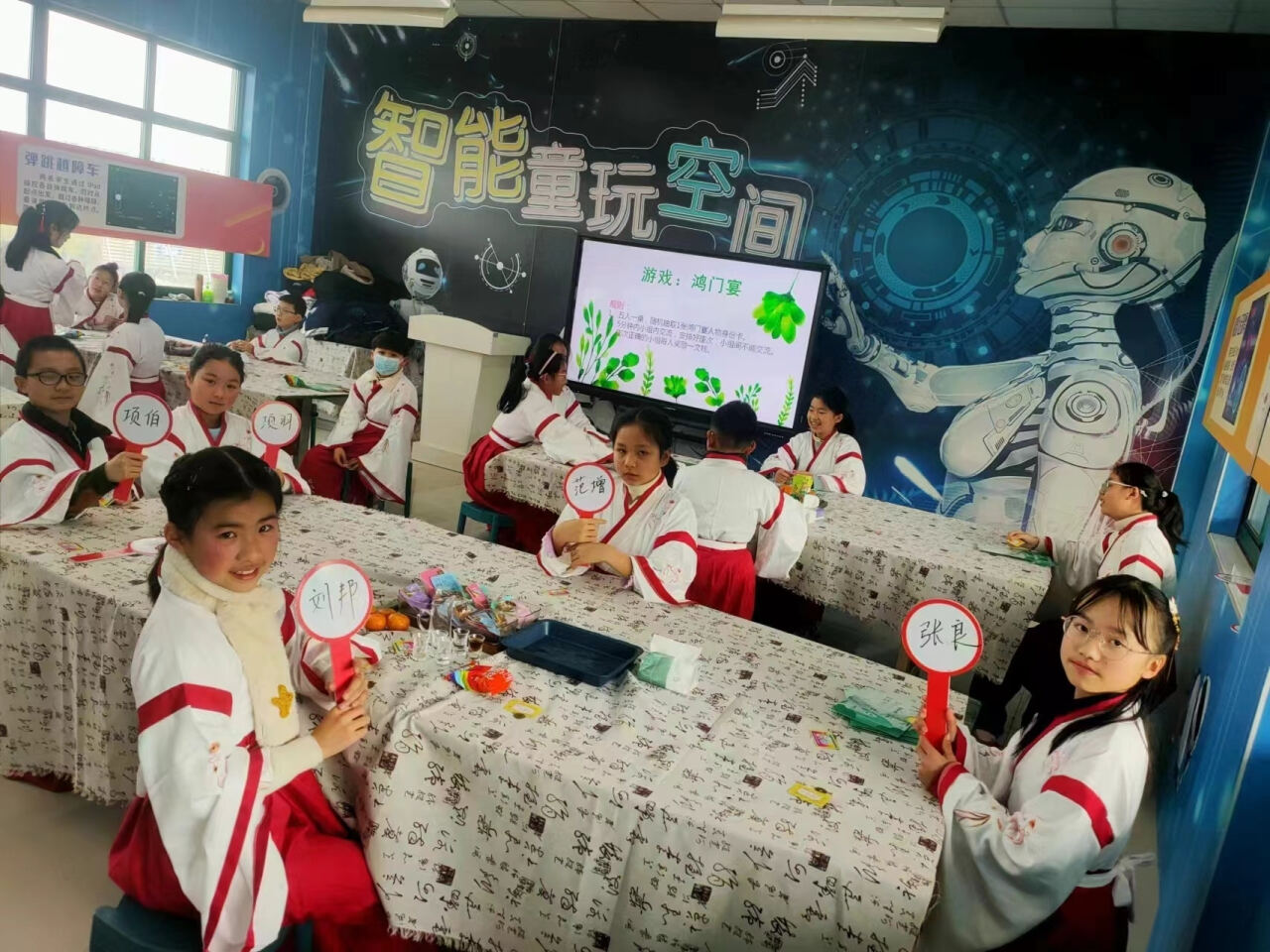 活动中,队员们换上宋韵汉服,沉浸在探究两宋历史的师生对话中,感受着宋代传承下来的文化底蕴和精神气质,还饶有兴致地扮演了两宋十八帝。随后,队员们一起了解乡饮文化,模拟游戏鸿门宴,学以致用安排家宴座席,品尝两宋特色美食,看懂美食背后的故事。品鉴着宋朝美食,队员们仿佛穿越了数百年的文化积淀和传承。整一天的活动不仅有富有生趣的葵卯年科举考试,还品尝了丰盛的宋式火锅宴,在行酒令、诗词飞花令中大家又感受到了文化的无限魅力。此外队员们还感受了宋代运动会项目蹴鞠、投壶、射箭,让民间游戏所表达的人文精神重新回归到人们的情感之中。在南宋非遗手作冰糖葫芦环节中,大家不仅了解到传统美食的制作工艺与古人进食的礼仪文化还品尝到了亲手制作的美食,美哉乐哉!