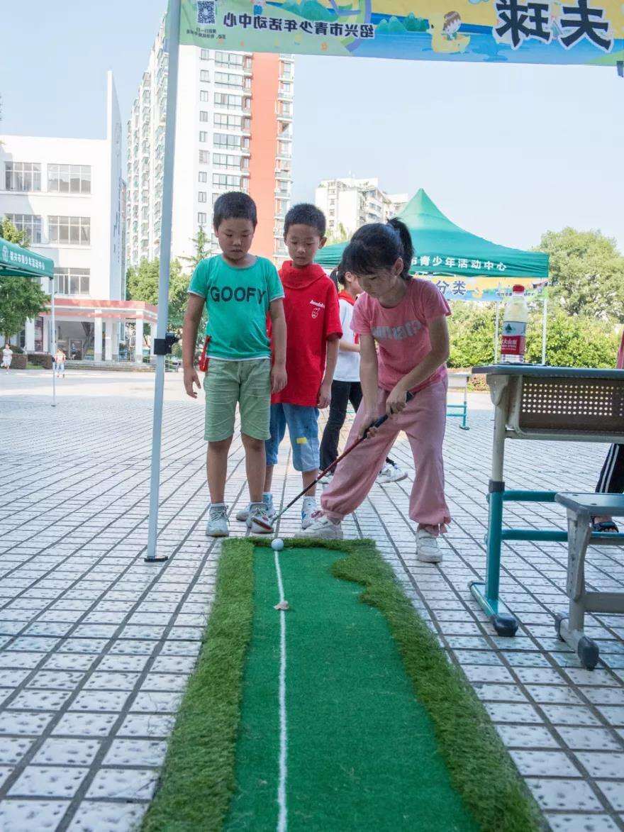 高尔夫球、无人机操控、射箭游戏……在稽山小学操场上,每个流动少年宫摊位前,都挤满了排队等候体验的学生,大家对这些以前只在电视上见到过的东西充满了好奇。