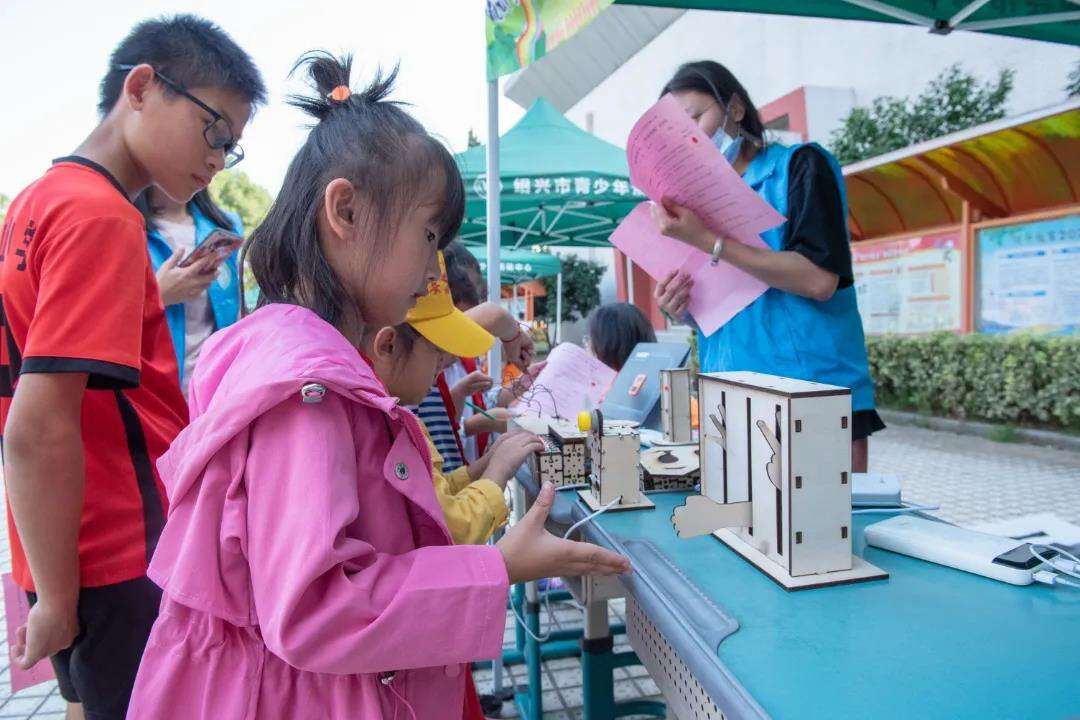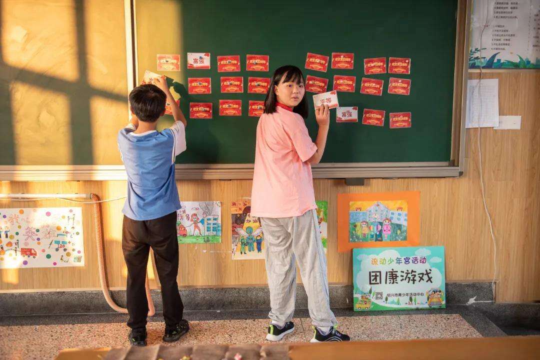 “流动少年宫”作为活动中心一个成熟的公益服务品牌,今年以来已进入新昌县拔茅小学、诸暨姚江镇江藻小学等10所小学开展服务。此前服务对象主要为乡镇农村学校,而随着双减政策的出台,活动中心已将城区学校托管时间的服务作为另一重点,充分利用自身优势助力“双减”工作。除了精心准备活动项目外,“流动少年宫”服务的志愿者均由绍兴市青少年活动中心的资深教师组成,这些“专业玩家”深受孩子们的喜爱。