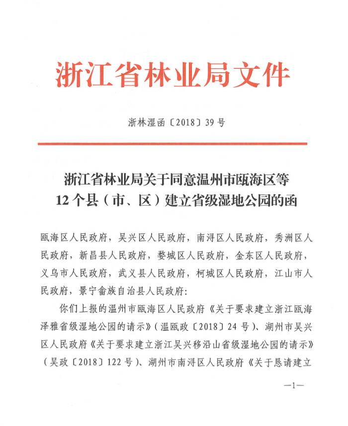 “你们上报的《关于要求建立浙江新昌黄泽江省级湿地公园的请示》,按照国务院办公厅《湿地保护修复制度方案》等规定,我局同意你们在黄泽江建立省级湿地公园!”几天前,浙江省林业局对新昌县人民政府的这份请示给予肯定答复。