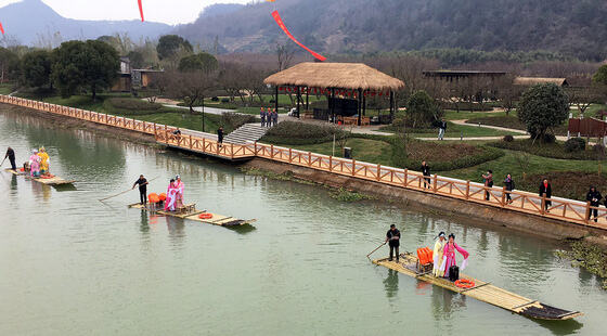 日前,嵊州市甘霖镇施家岙村边的剡溪上,越剧小镇组织了水上越剧专场表演。水上表演越剧,曾是嵊州市甘霖镇施家岙村的一大旅游特色;剡溪是嵊州的母亲河,越剧漂流成了剡溪上一道独特的风景线。