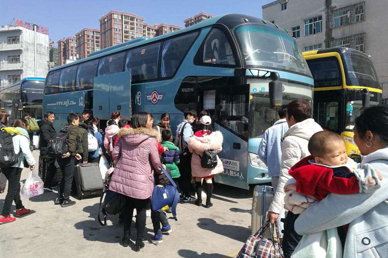 企业复工需员工 绍兴节后春运进入“反向包车”热
