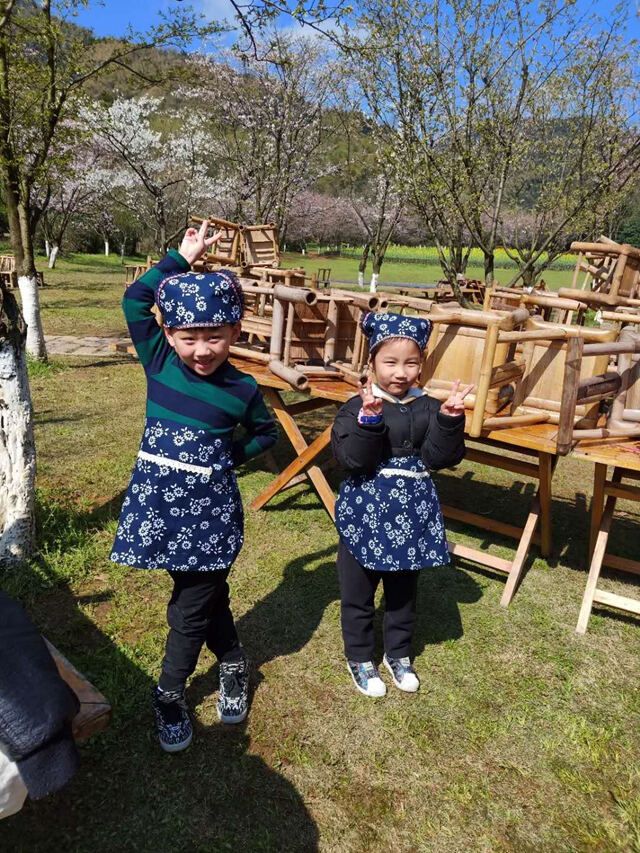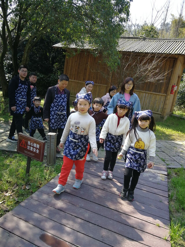 孩子们穿戴上采茶装备,家长们也围起了围裙,一个个化身为茶农,可爱着呢!