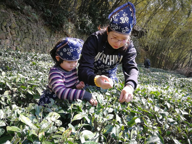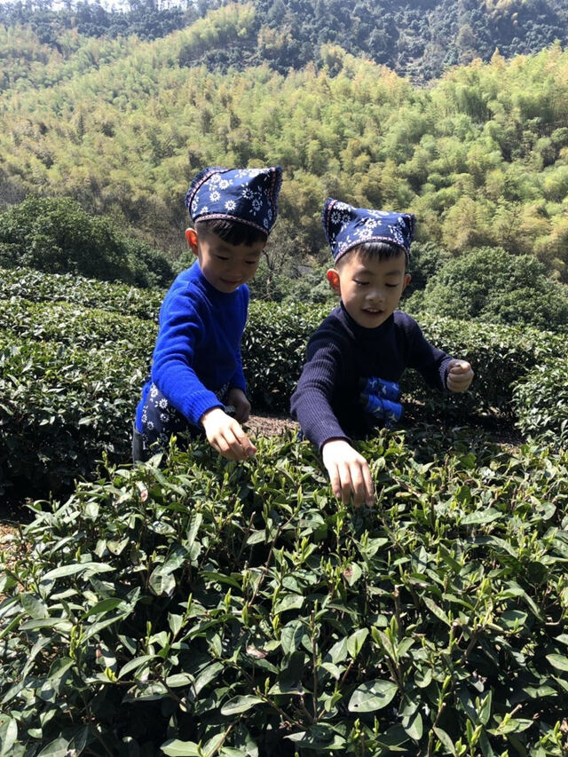 萌娃化身小“茶农”踏春采茶 感受指尖上的茶香