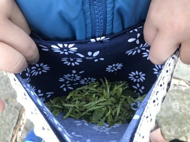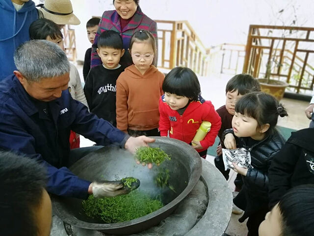 大家在工作人员的带领下浩浩荡荡地奔向指定茶园,刚刚还在你追我赶的小朋友们瞬间就化身成了勤劳的小蜜蜂涌入茶岭。在工作人员的指导下,“茶农”小心翼翼地把一个个嫩芽从茶树上采摘下来,放进围裙的兜兜里。一个小时的采茶时间很快就结束了,接下来,工作人员带大家一起见识了炒茶。把大家一个小时的劳动成果,炒制成香喷喷的茶叶。