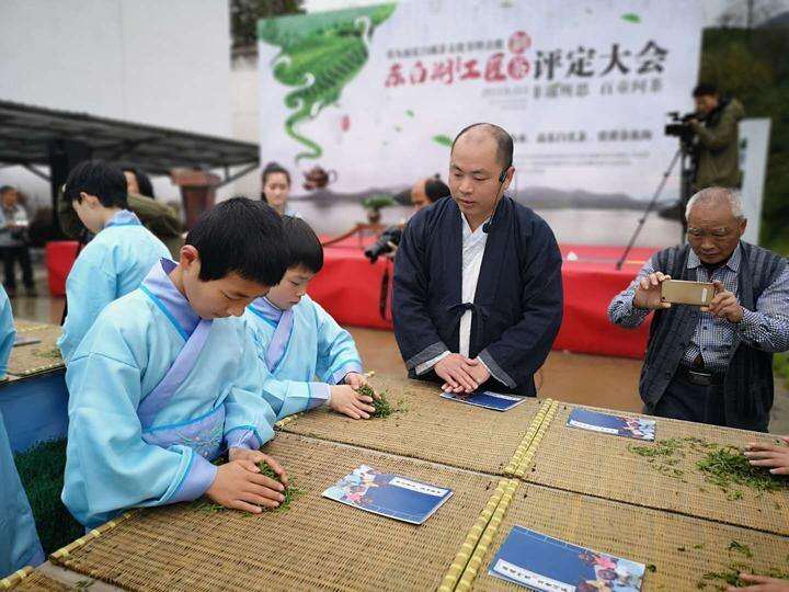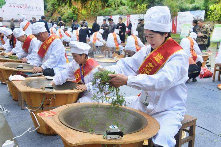 茶文化节上的另一项重头戏就是首届“东白湖工匠(制茶)”评定大会了。挑拣茶叶、热锅、下茶油、筛茶叶、烘炒……30位当地的炒茶高手齐聚一堂,现场开展了一场“茶王争霸赛”。通过现场手工炒制,经省、市茶业专家组评定,最终评出首批10名“东白湖(制茶)工匠”。“我们希望通过此次评定大会,挖掘民间人才,传承手工炒茶技艺,推动东白湖镇名优茶产品质量的全面提升。”东白湖镇政府相关人员说。