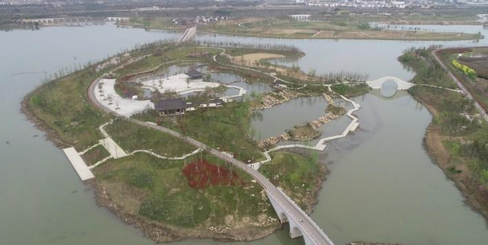3月30日,记者在现场看到,建成后的滞洪区由一个个岛屿构成,岛上有长堤绿道、亭台楼阁,不同的岛还被赋予不同功能定位——生态科普、田园观光、名人诗词文化展示等,岛与岛之间则是大片被拦蓄的江水,波光潋滟。
