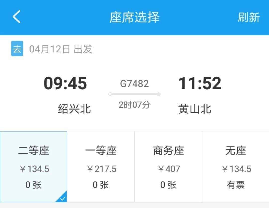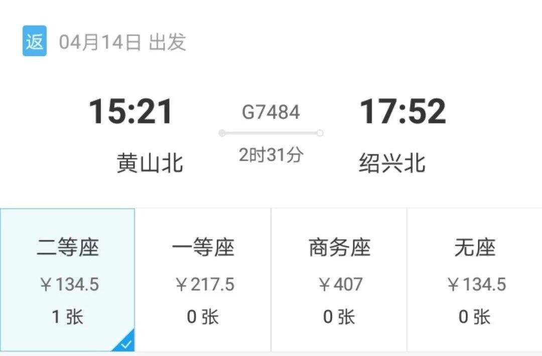 绍兴北站出发的二等座票价为134.5元