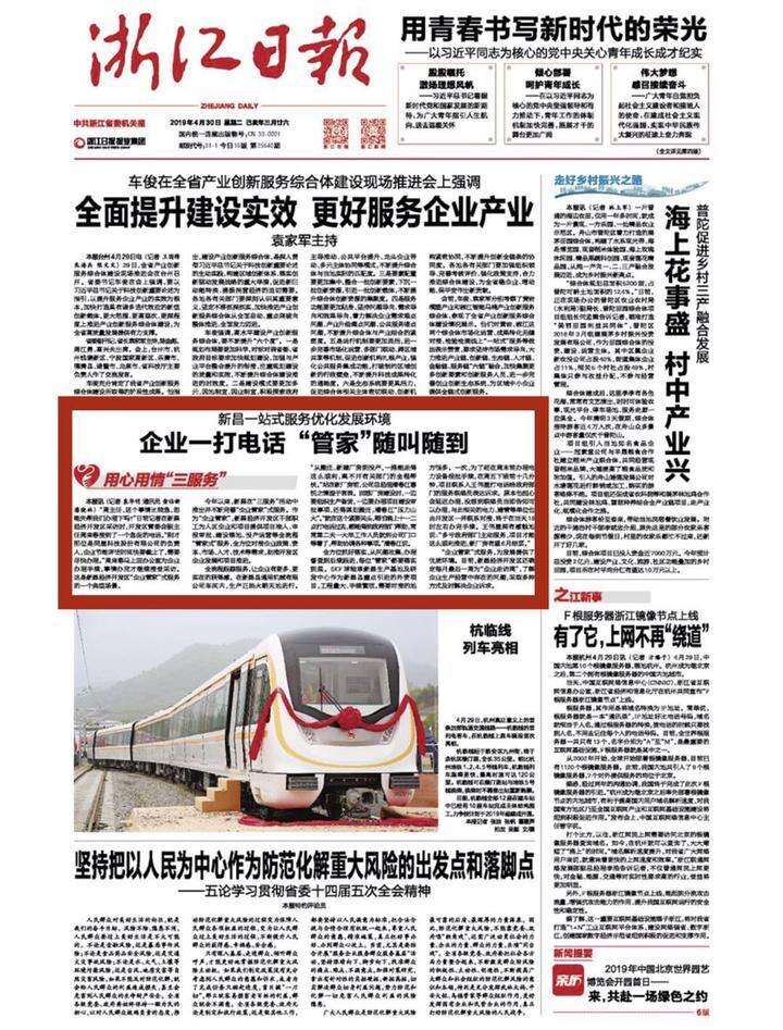 浙江日报头版丨新昌一站式服务优化发展环境