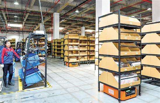 浙江在线绍兴频道5月14日讯(浙江在线记者 高洁)5月13日,在浙江联华智慧物流绍兴基地,二楼智能仓储的机器人系统在自动拣选商品,提升物流系统效能,促进“机器换人”。该基地位于杨汛桥镇,占地面积10.18万平方米,去年底正式投入使用,最高储存量达到150万件,规划日均吞吐能力65万件,成为柯桥加快融杭的智能物流新动力。