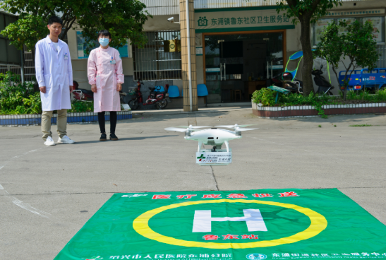 演练模拟了东浦街道社区卫生服务中心鲁东服务站在晚高峰时段接诊一位疑似急性心梗患者的情况。站点医生将心电图等检查结果通过远程影像系统报告给东浦分院并请总院胸痛中心会诊。经会诊后判断为急性心梗,专家下达抢救指令:立即让患者服用瑞舒伐他汀等药物,同时马上转送市人民医院胸痛中心抢救。由于鲁东站没有该急救药品,又处于交通繁忙时段,东浦分院随即启动应急预案,通过无人机将急救药品快速投递到站点。3分钟不到,无人机平安地降落在3公里外的鲁东站点,工作人员将药取出后迅速让患者服下,为抢救赢得了时间。15分钟后,急救车赶到鲁东站点,将患者送往绍兴市人民医院。