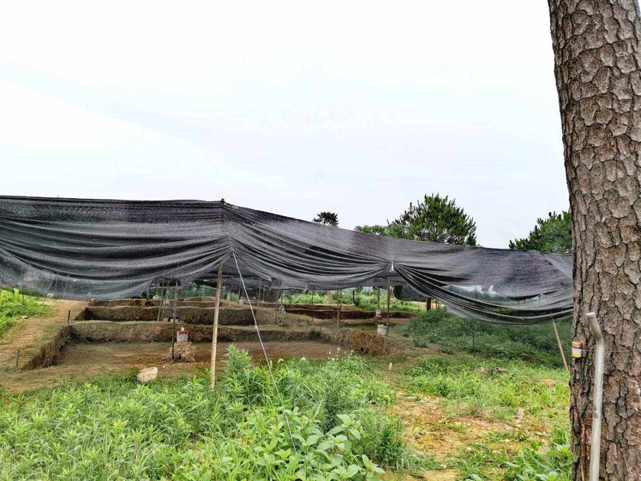 在二号陵园遗址周边有3棵古松树,古松树似乎是种在陵园节点处。而在7个考古探方内,考古人员挖到了3棵枯死的松桩。