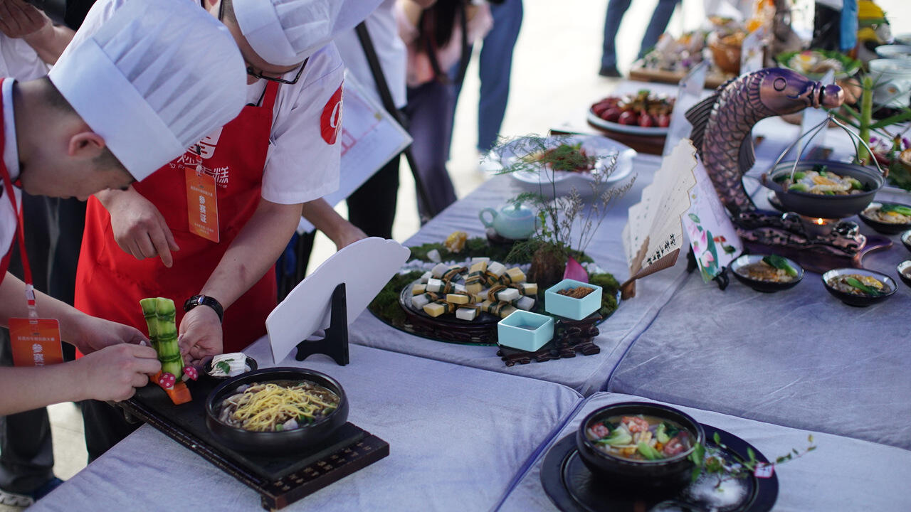还有百丈风情山庄的咖喱年糕,隆门客栈民宿的野生菌菇炒年糕,东茗乡后岱山村十里云上民宿的彩色“红星蓝图”年糕……令人目不暇接。经评委现场打分,最终,大灶头和尚诗堂分别获得新昌炒年糕创新大赛酒店(饭店)组和民宿(农家乐)组的一等奖。