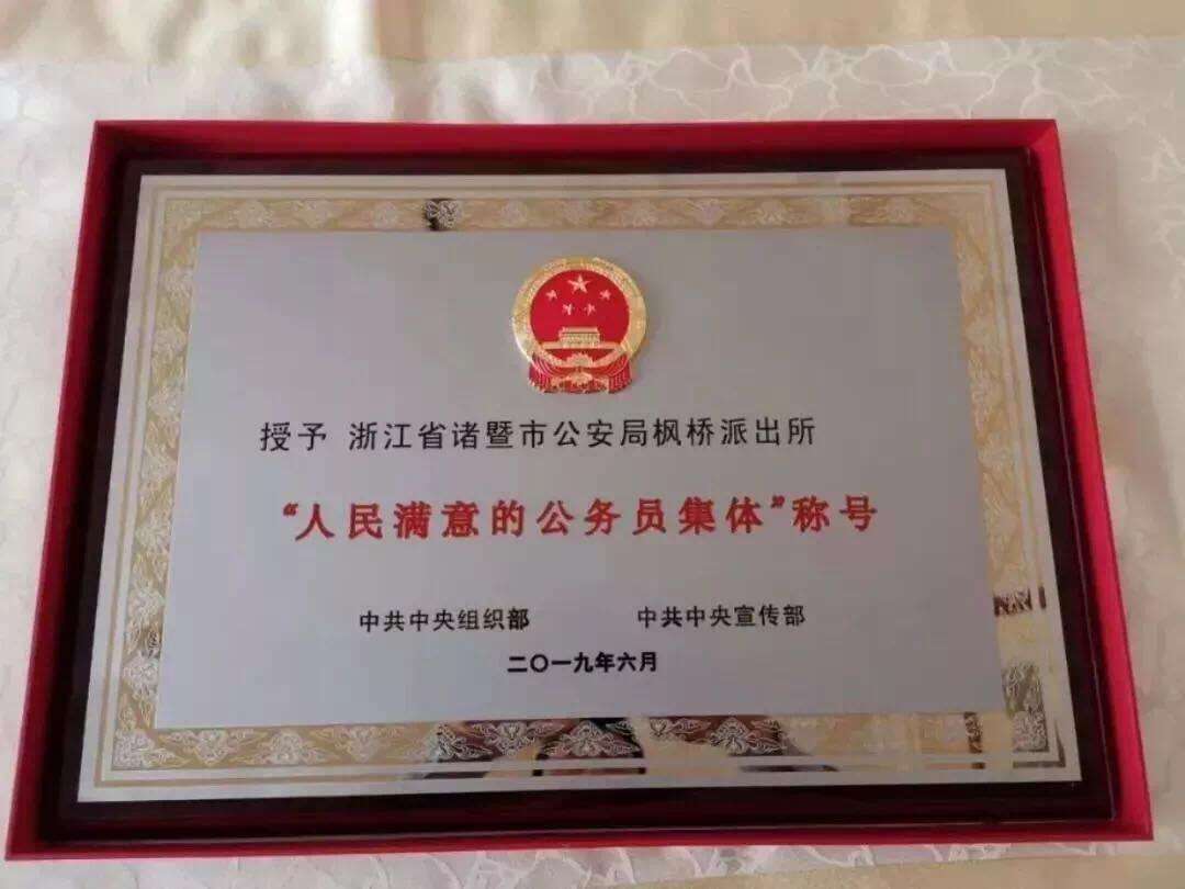 6月25日,第九届全国“人民满意的公务员”和“人民满意的公务员集体”表彰大会在京举行。绍兴市诸暨枫桥派出所作为“人民满意的公务员集体”之一受到表彰。
