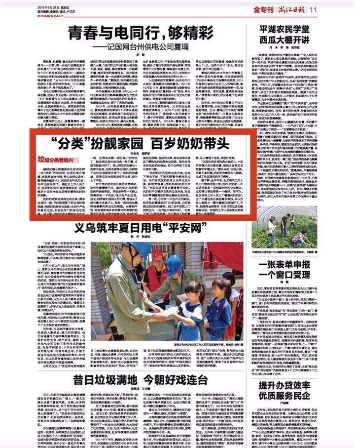 “正因为有这样热衷公益的人,小区的环境才会日渐改善,居民才会更加自觉爱护环境卫生。”黄月朵说,垃圾分类,年龄不是问题,沈奶奶的精神令人敬佩,也成了社区居民的学习榜样。