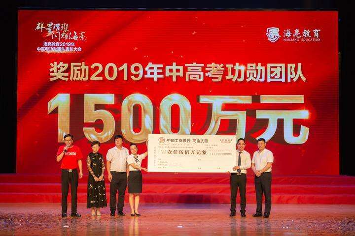 当海亮集团创始人、董事局主席冯海良夫妇将一张放大的1500万元的支票交到2019年海亮教育中高考教师团队的三位代表手上的时候,台下的师生一片欢呼……6月28日晚上,一场让海亮教育管理集团师生期待已久的表彰大会在诸暨海亮教育园举行。