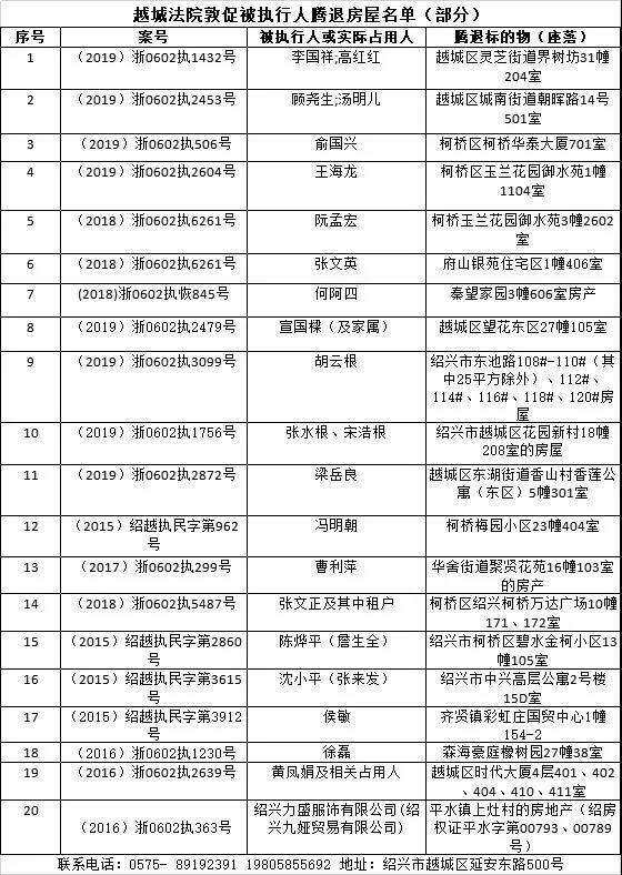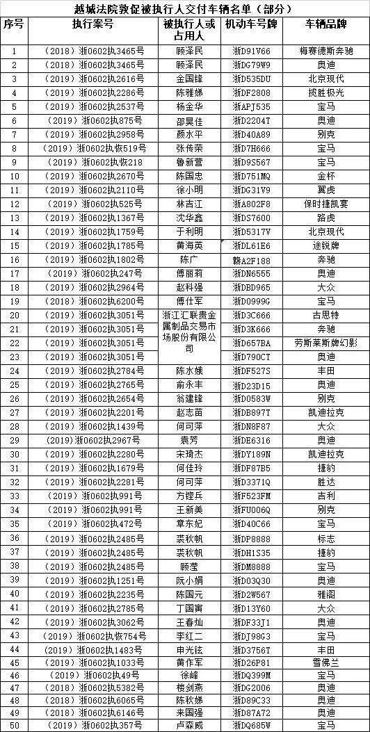 越城法院敦促履行名单(部分)