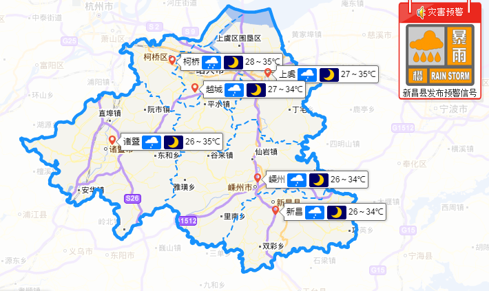 这几天想要有点凉快,除了空调,恐怕只有依靠午后雷阵雨了。绍兴市气象台预计,7月22日晴到多云,午后到上半夜部分地区有阵雨或雷雨,有雷雨时短时雨量较大。明天晴到多云,午后局部有阵雨或雷雨。但是阵雨、雷雨只是客串一下,难以造成整体降温的效果。今明两天最高气温区间都是34~35℃,最低气温区间也有26~28℃,随着太阳的炙烤,预计接下来几天最高气温还会往上走。