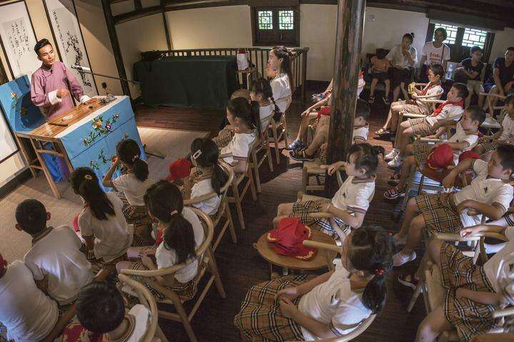 “研学活动,让孩子们走进书场,近距离的欣赏和了解绍兴的越剧、莲花落、评话”方天说,根据不同年龄段的孩子选择不同的节目和表演方式,让他们听得明白、听得高兴。在研学活动中,记者看到不仅是做观众,活动中还设置了互动环节,让孩子们上台体验越剧,学唱腔学步法学手势。