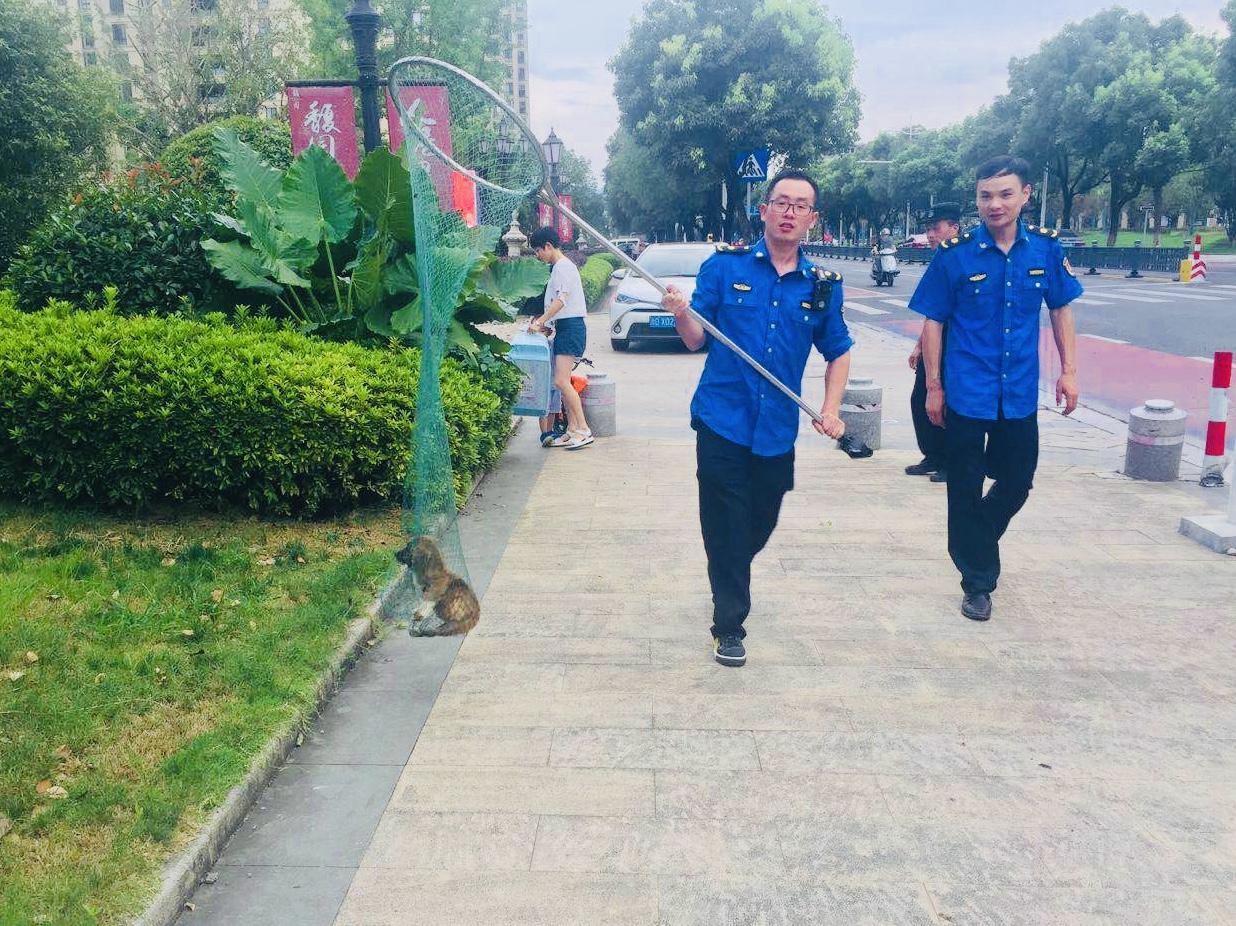 柯岩街道综合执法中队获悉社区流浪犬情况后,联合当地社区力量,和社区工作者们组成巡视小队,在20个小区内开展了流浪犬集中整治专项行动。考虑到流浪犬的出没时间规律,行动在每天傍晚5点左右开始,重点解决排查确定的热点区域和居民反映的流浪犬扰民问题。尽管面临整治小区数量多、面积大、绿化多的问题,也遇上了梅雨季的湿热、三伏天的酷暑,参与整治的队员却毫无怨言,以连续屏霸朋友圈运动步数榜首的劲头整治犬患。在执法中队、社区工作者、社区居民的不懈努力下,小区流浪狗的隐患已经得到有效控制。