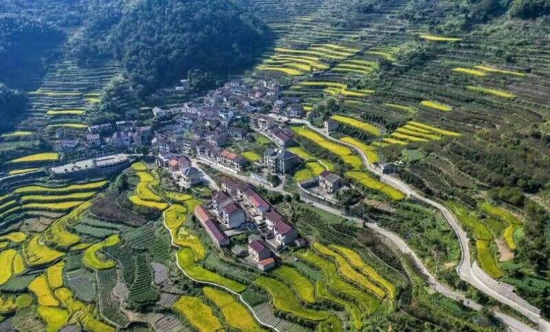 9月25日,嵊州下王镇的覆卮山梯田层层金黄色的波浪,空气里弥漫着成熟稻谷的清香,千年梯田进入秋收的季节。金黄的稻浪与泉岗千年古村、绵延翠绿的山林构成一幅幅秀丽的丰收画卷,景色美不胜收。