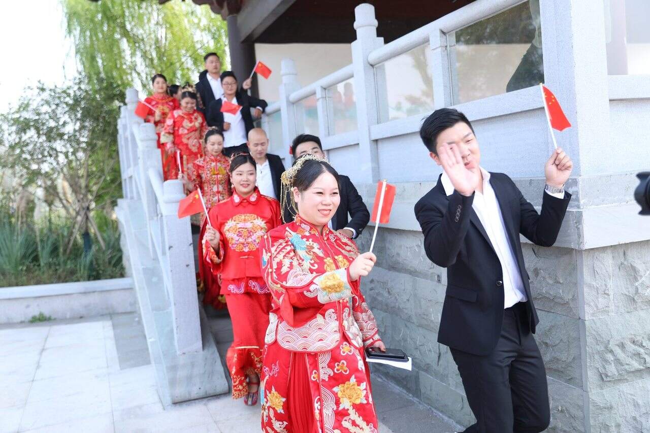 轻松浪漫的氛围中,新人们参加了一系列趣味活动,品尝着的幸福滋味的同时,也用这种喜庆的方式向新中国成立70周年献礼。