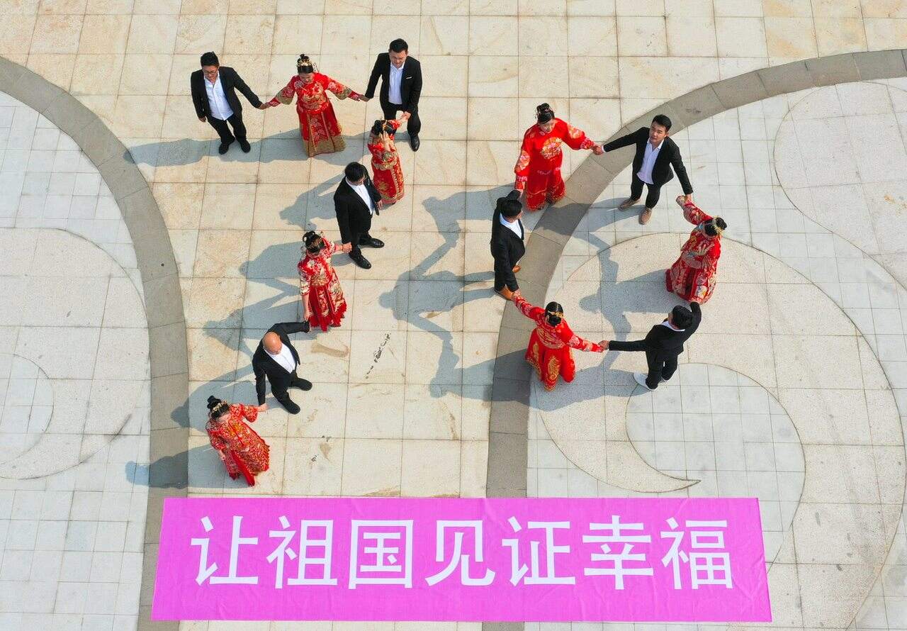 嵊州新人集体婚礼向新中国70周年华诞致敬
