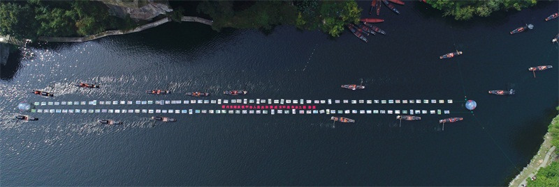 位于古运河边的东湖,一直是游客的旅游打卡地。昨天上午,由绍兴市文化旅游集团有限公司主办,《摄影世界》杂志社、绍兴市东湖景区管理处、绍兴市摄影家协会承办的“湖光魅影——绍兴东湖庆祝新中国成立70周年水上摄影展”在东湖景区开展。120块印有绍兴东湖各时期人文、风光照片的特制展板,飘动在景区陶社至秦桥段近200米长的核心水域,形成了别具一格的“水中光影大道”。游客们坐在乌篷船上,就可欣赏到这些图片。这些精美的图片,在湖光山色中,形成虚实交映的奇景,让游客体验了东湖梦幻般的水上之旅和“如在镜中游”的美好。